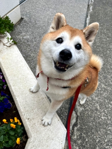 きれいなお花を見つけたまるちゃんは飼い主さんを見上げ、真ん丸お目々を輝かせて満面の笑みに。その様子はまるで、「お花あったよ!」と報告をしてくれているかのようです。なにげない毎日の散歩道、まるちゃんのおかげで春の訪れを感じることができました。
