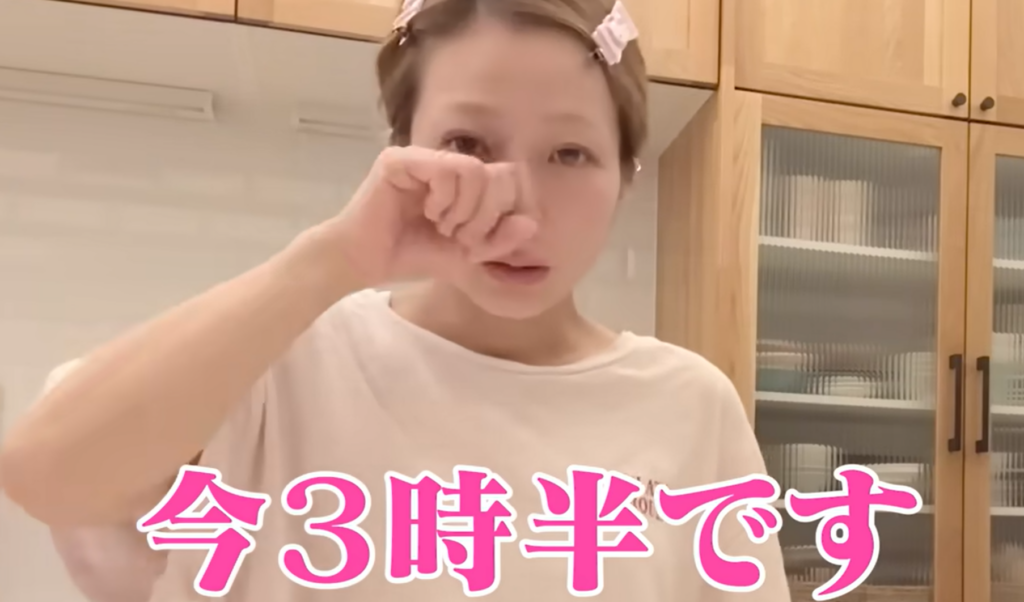 眠たい目をこすりながらキッチンに立つ辻さん(画像はYouTubeから)