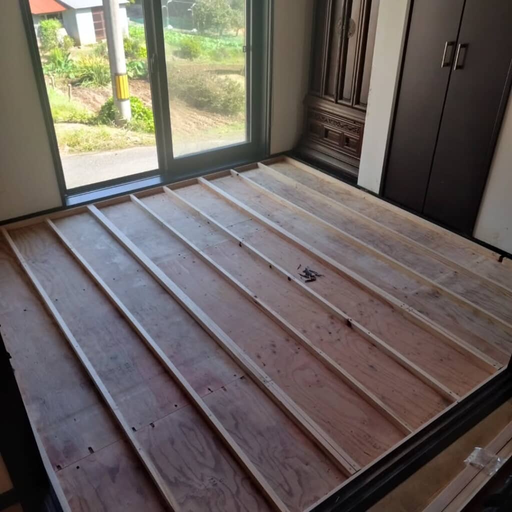 驚くべきはそのクオリティーで、まずは床板を支えるための下地材である根太(ねだ)を打ち、コンパネを敷き、その上からフローリング風のクッションフロアを貼るという本格的な工程を踏んでいるのです。素人目には、まるで業者に頼んだような仕上がりに見えます!
