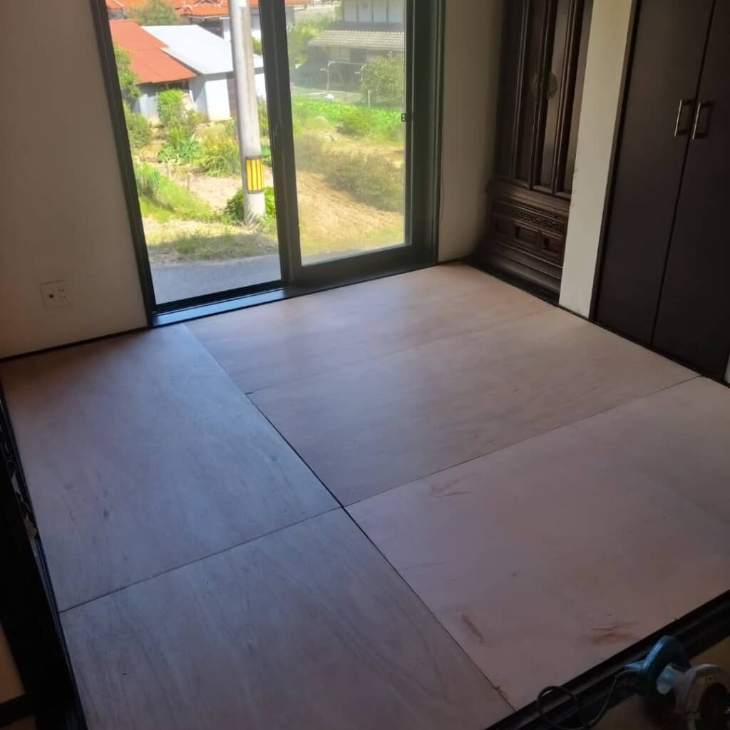 安立さんは、「見た目にも汚い感じになってきたため、寸法測って、ホームセンターで切ってもらって、お母さんにも手伝ってもらって自分でフローリングにしちゃいました!!」と夫のためにDIY。