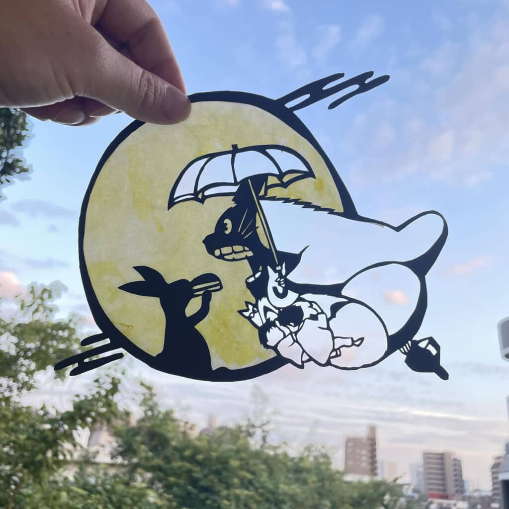 作品のモチーフは、芸能人や食品パッケージ、アニメや漫画のキャラクター。今回は「千と千尋の神隠し」や「となりのトトロ」、「もののけ姫」などの切り絵で注目を集めることとなりました。