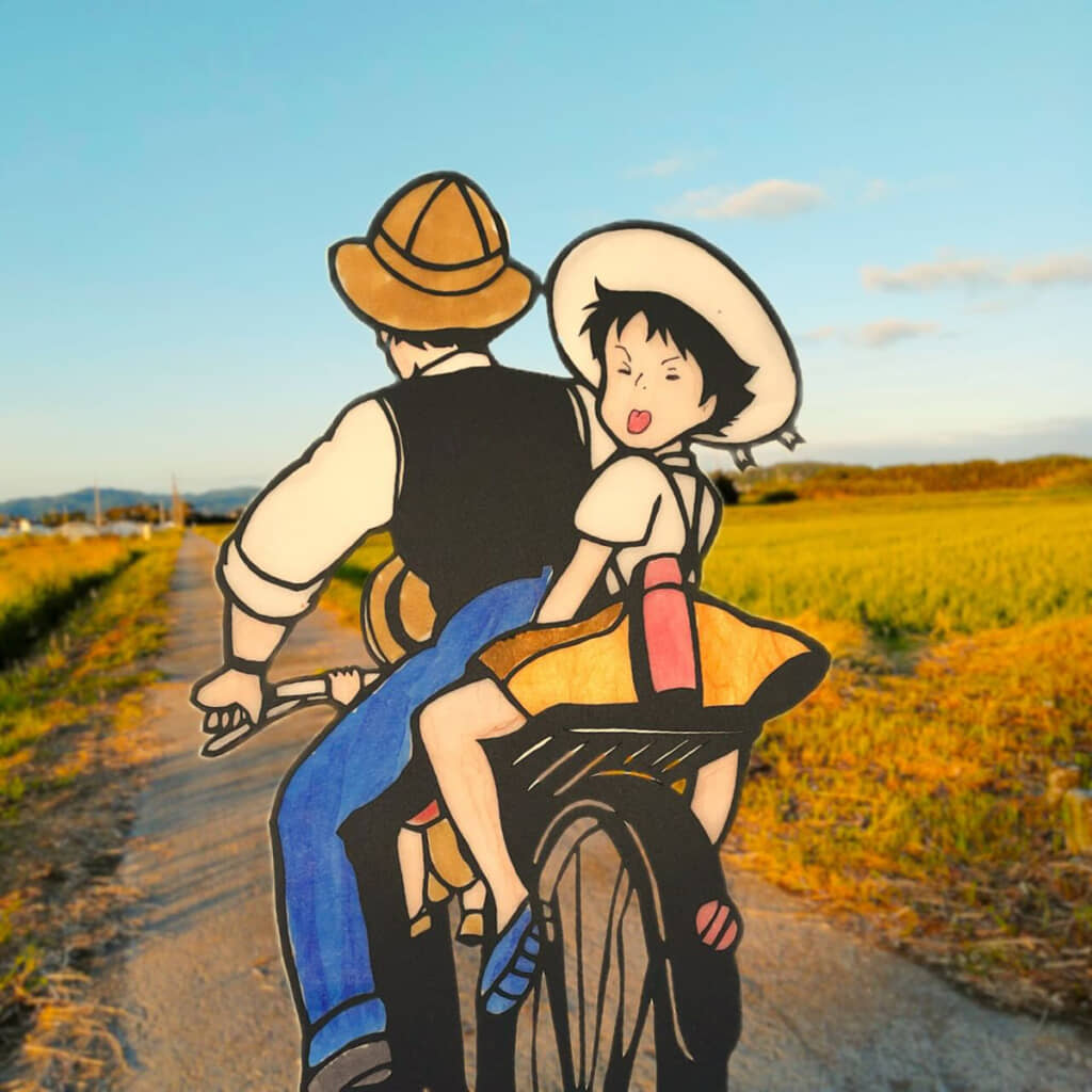 丁寧に切り抜かれたのは、空を飛ぶネコバスや、たらい舟で海を渡る千尋といった名場面の数々。風景写真と合成すると、まるでアニメが日常へ飛び出してきたような、不思議な感覚をもたらします。