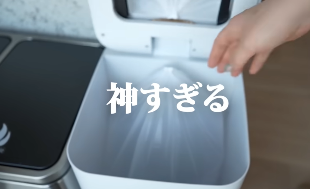 はじめにゆうこすさんが紹介したのは「T-PROFESSIONAL 完全自動ゴミ箱」。フタが自動開閉するだけでなく、ボタンを押すとゴミ箱内部に設置していたゴミ袋を自動で梱包してくれるというアイテムです。また梱包だけでなく新しいゴミ袋も自動でセットしてくれる機能も付いており、ゆうこすさんは「消耗品じゃないし、ずっと使えるし、それでこの値段だったら私は買うな―と思ってタイパ重視で購入しました」と語りました。