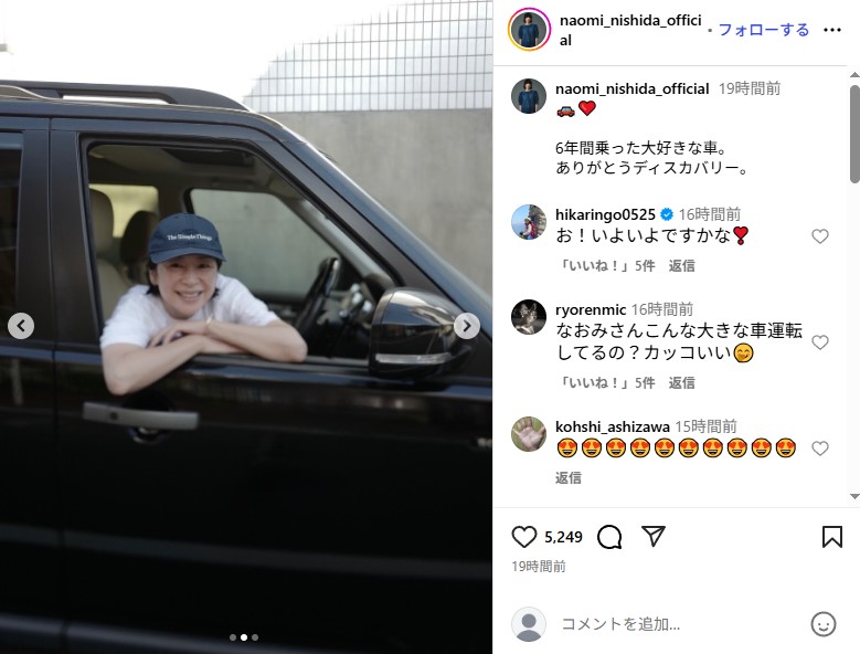 ディスカバリーは7人乗りのファミリー向け大型SUV。サイズやカラーなど西田さんのイメージとギャップを感じたファンも多かったようで、「こんな大きな車運転してるの? カッコいい」などの反響が寄せられた他、「次の車楽しみですね」「つぎは何に行くのかな」と新たな相棒に期待を寄せるコメントも届いていました。