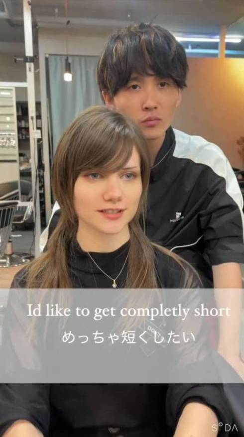 2つ目は、美容師が長髪の女性をショートカットに変身させる動画(担当:「ALLY TOKYO English friendly」ありぺーさん ※TikTokInstagram)です。