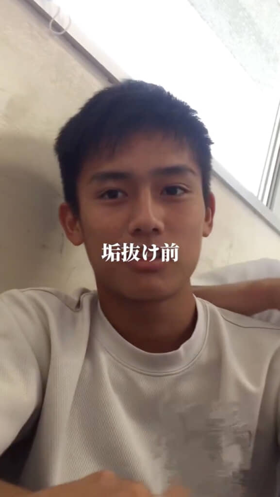 まず映し出されたのは、2020年ごろに撮影された高校時代の海馬さんの姿です。当時はサッカー部に所属しており、短髪で肌はこんがりと焼けた小麦色。ファッションに興味はなく、いつも動きやすい格好をしていたそうです。