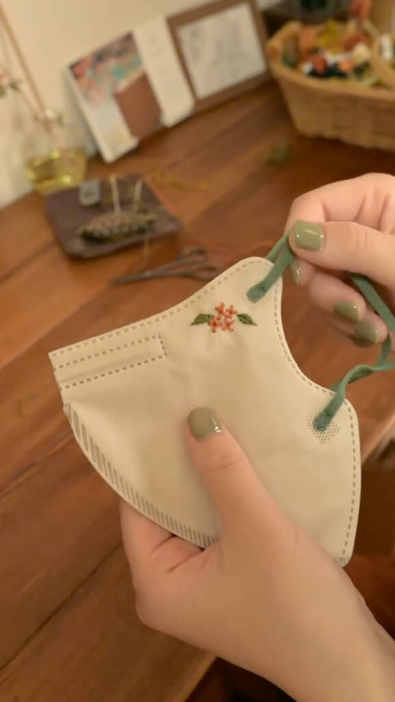 【刺しゅう】刺しゅう作家が、使い捨てマスクに下書きなしで刺していくと…… 「特別な日に作り置きしておきたい」「可愛すぎて捨てられない」