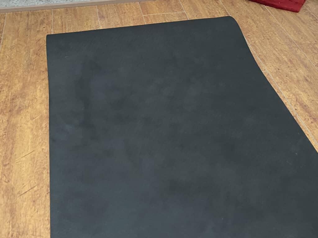 以前使っていた100均のヨガマットは体重移動するたびに伸びて、つま先をねじるたびにボロボロになっていてストレスでしたが、このヨガマットはつま先をねじって床を蹴る動きをしても伸びたり破れたりすることはありません。1カ月使いましたが目に見えてヘタることもなかったです。