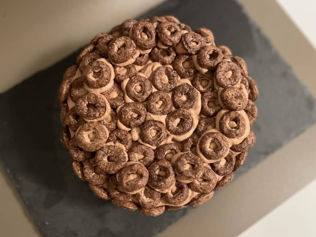 「チョコワ」で作った縄文土器をイメージしたケーキ