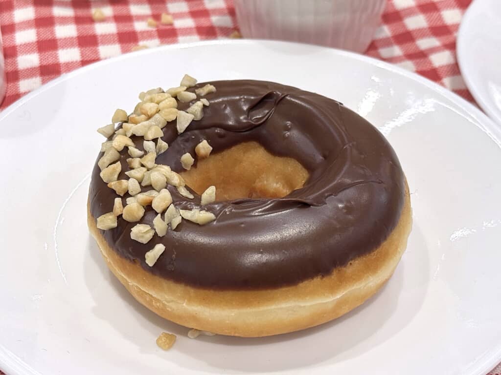 ヘーゼルナッツペーストとココアでできているヌテラと、細かく砕いたヘーゼルナッツは当然のように相性抜群……ヌテラ好きにはたまらないドーナツです。