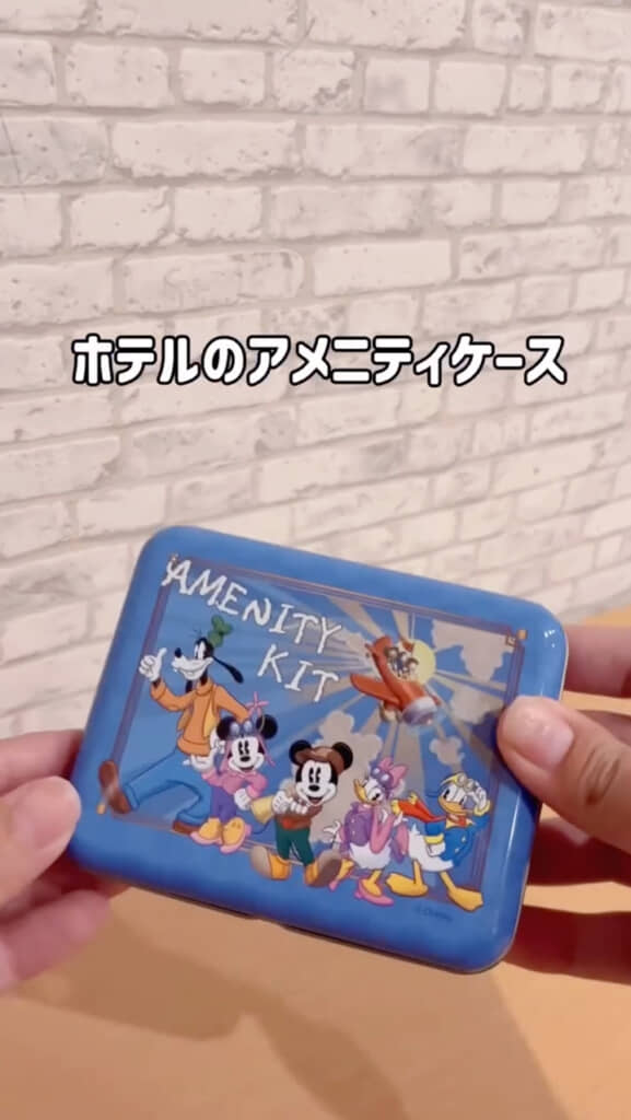 そして最後は、ホテルのアメニティケース。こちらは、本体とフタがくっついているタイプの缶で、フタ裏にミラーシールを貼って子ども用のメイクボックスに。ディズニーリゾートにお出かけする前に、これでおめかしすると気分も上がりそうです!