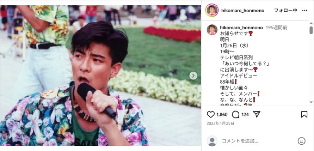 若かりし日の彦摩呂さん(画像は彦摩呂Instagramから)