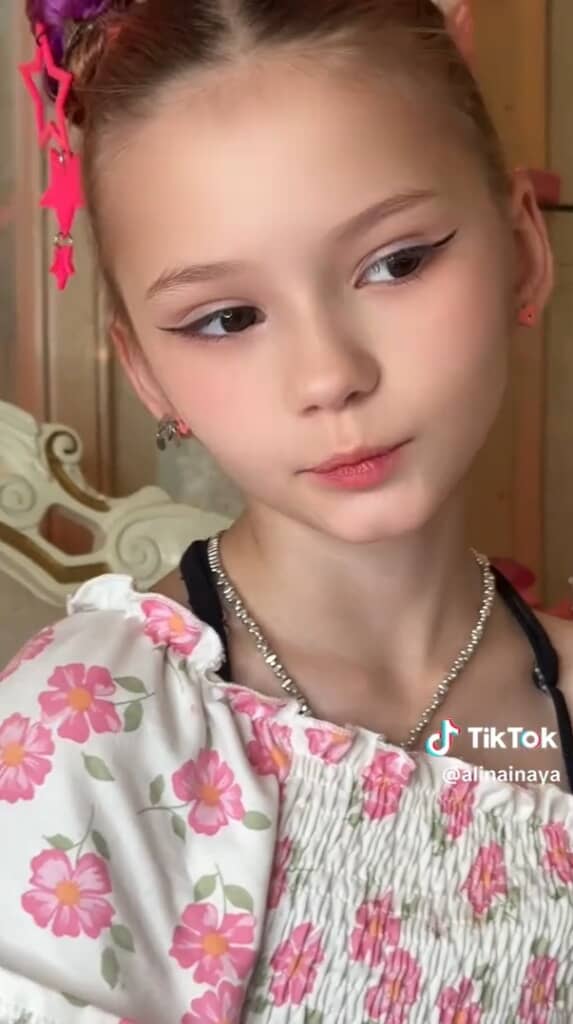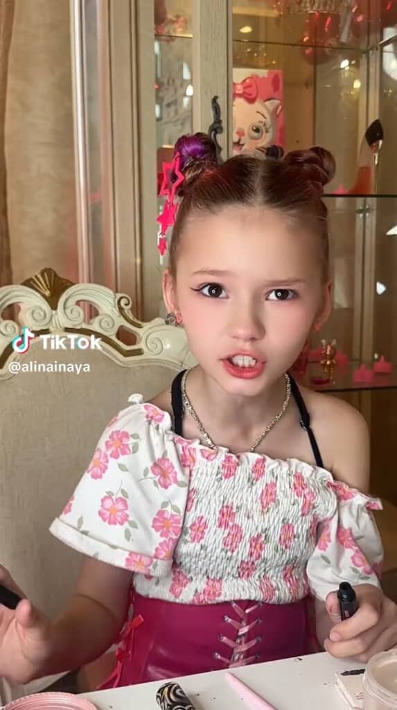 投稿者はTikTokユーザーのInaya family(@alinainaya)さん。今回の投稿では、ドレッサーの前に座る9歳の女の子が登場します。
