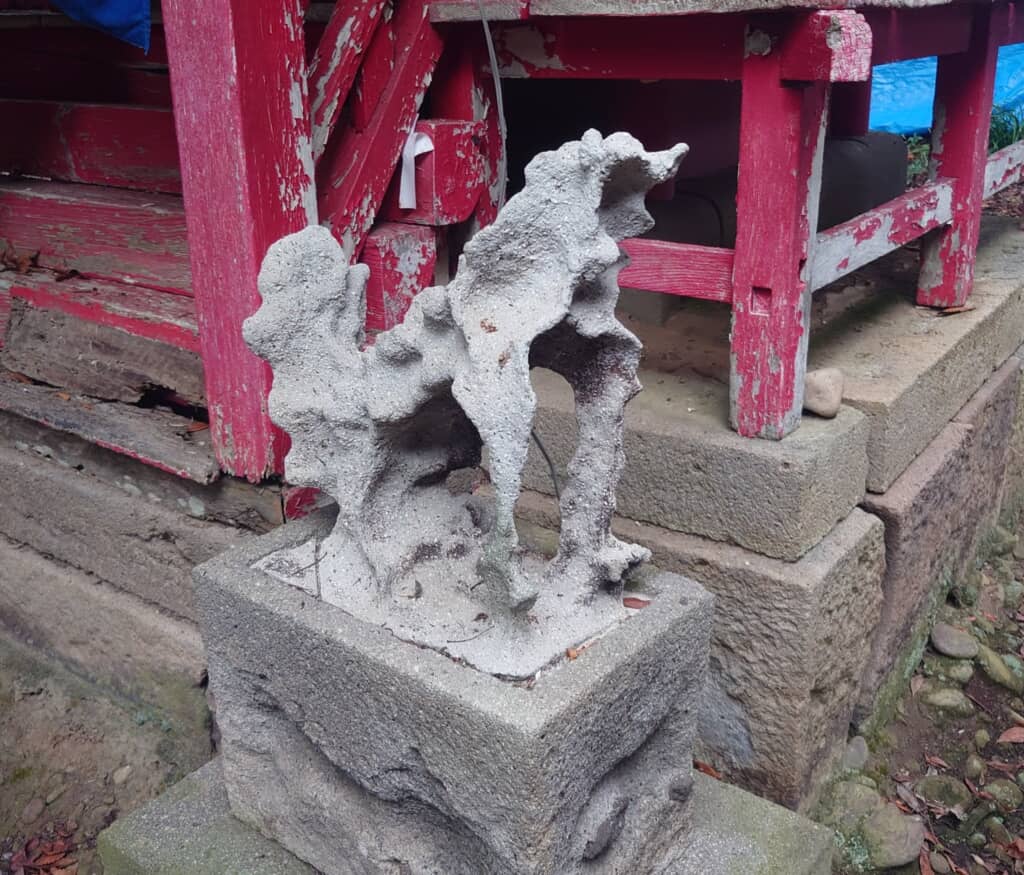 パッと見ただけでは狛犬だと判別できそうもない見た目ですが、神社の特定の場所に居ることから狛犬として認識できしてしまうことに、幣束さんは「概念になりつつある狛犬」と紹介しています。