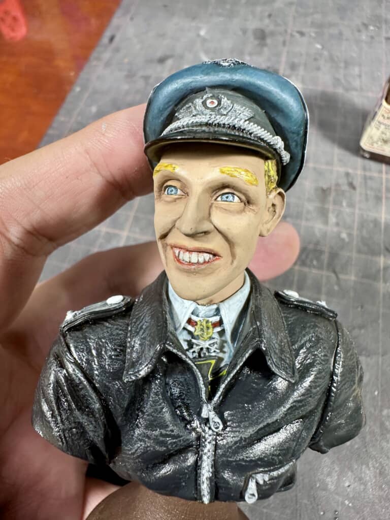 モデルとなっているのは、第2次世界大戦時にドイツ空軍の撃墜王として名を馳せた、エーリヒ・アルフレート・ハルトマン。在りし日の姿を胸像として立体化したフィギュアで、飛行機模型の展示会「大激作展」で戦闘機の模型と並べて展示しようと考えました。