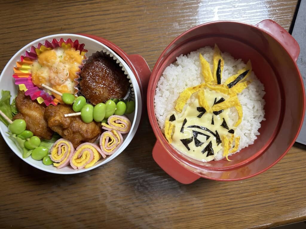 ママである投稿者さんによると、以前に通っていた幼稚園の年少クラス以降は、子どもたちが自分でお弁当の一品を作る“お弁当の日”があったそうです。そのため、小学生になった今でも給食がないときは自分でも作っていて、Threadsでは息子さんや娘さんが以前に作ったキャラ弁も公開されています。