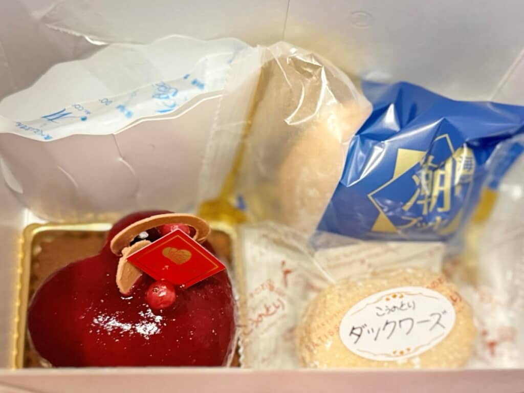 おやつには赤いベリーのケーキと、「こうのとりダックワーズ」、ブッセが保冷剤付きの箱に入って運ばれてきたそうです。どれもおいしそうでボリューム満点。これは食べたら元気が出そうですね!
