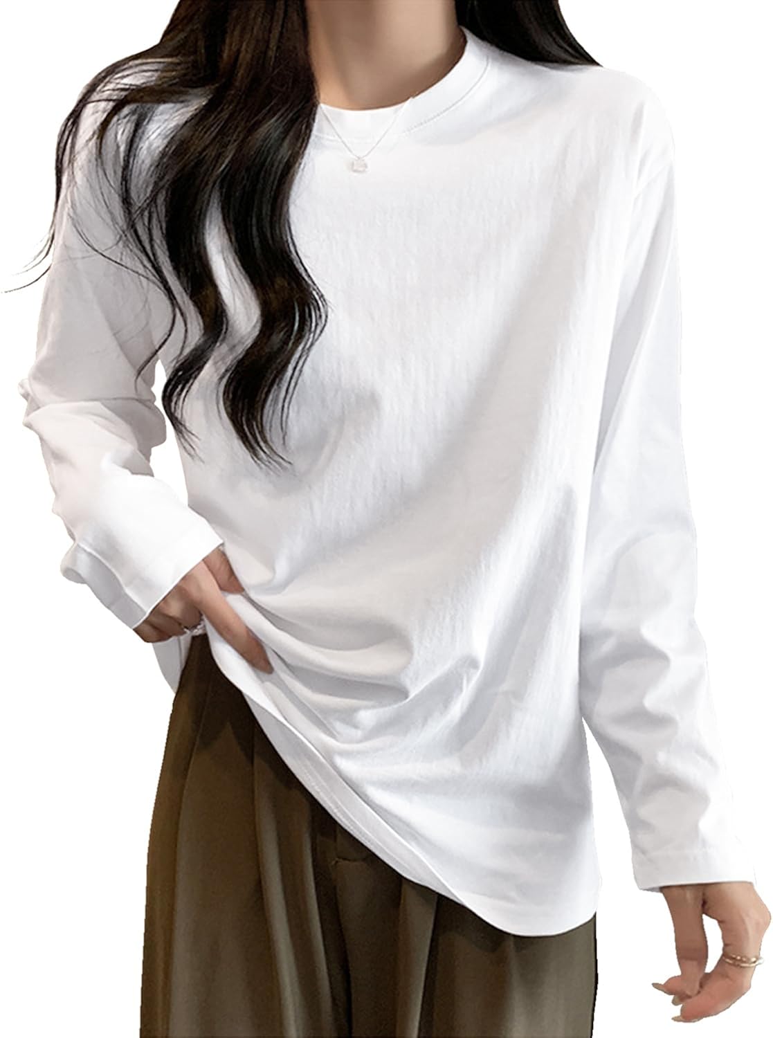 (6/7)もう1つのおすすめはこちらもユニクロの「ソフトコットンラウンドヘムT」。身幅がゆったりとして丈も少し長めのデザインです