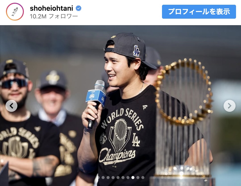 ドジャースは日本時間4日、本拠地・ロサンゼルスでパレードと優勝祝賀会を実施しました。大谷選手は同日、Instagramを更新。投稿には100万件以上の“いいね”が寄せられ、「おめでとうございます!」「感動をありがとうございました」といった声が集まっています。