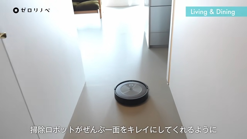 こだわりはデザインだけではありません。部屋は段差や扉のレールがなく、ホコリがたまりにくいフルフラットな設計。そのため、普段の掃除はロボット掃除機のスイッチを押すだけで完了! 共働きで忙しい夫婦が、子どもとの時間をできるだけ作りたいと思い、家事の手間をなくすように工夫したそうです。