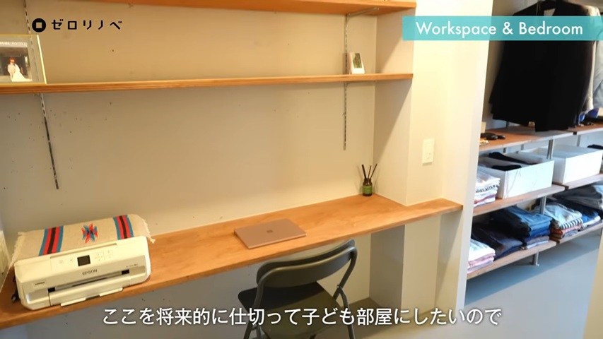 以前の家ではリビングの狭いスペースで仕事をしていたそうで、今回のリノベーションでは専用のワークスペースも準備。ゆくゆくは子ども部屋にしたいとのことで、シングルベットを置けるサイズ感で計画するなど、将来設計もバッチリです。