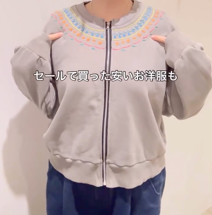 GUでセール中だったシンプルなスウェットをリメイクして、刺しゅうを施す様子がInstagramに投稿されました。動画は、リメイク編刺しゅう編合わせて145万8000回以上再生され、7000件以上の“いいね”を獲得しています。