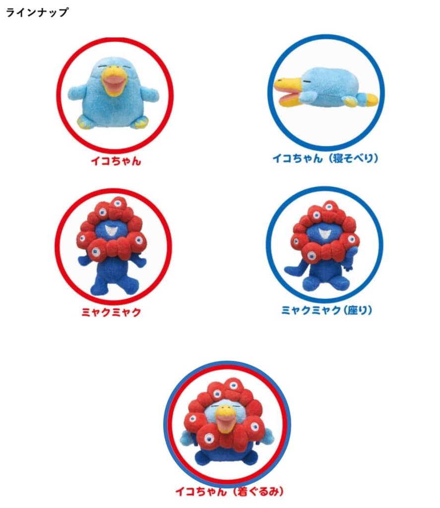 同商品は「イコちゃん」「ミャクミャク」「イコちゃん(そべり)」「ミャクミャク(座り)」「イコちゃん(着ぐるみ)」の全5種。うち2つはミャクミャクのものなので、5回引いて一度もミャクミャクが当たらないのはある意味奇跡的な確率かもしれません。