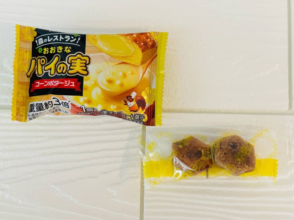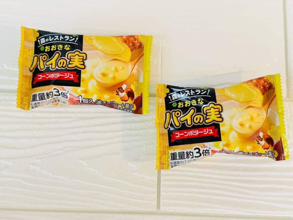 左:「おおきなパイの実<コーンポタージュ>」、右:通常サイズの「パイの実」