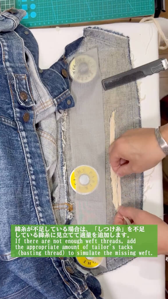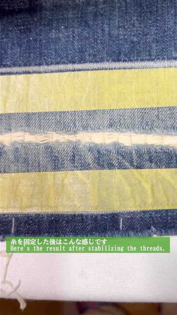 なお、アイロンをかける際は、クッキングペーパーを挟むことでアイロンに接着剤が付着するのを防げます。また緯糸(よこいと)が不足している場合は、しつけ糸を追加して補うことで自然な仕上がりになるそうです。