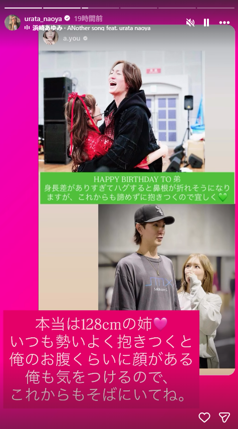 浜崎あゆみ、身長20センチ差の“弟”との密着ショット公開し誕生日を祝う→弟「これからもそばにいてね」やりとりに反響