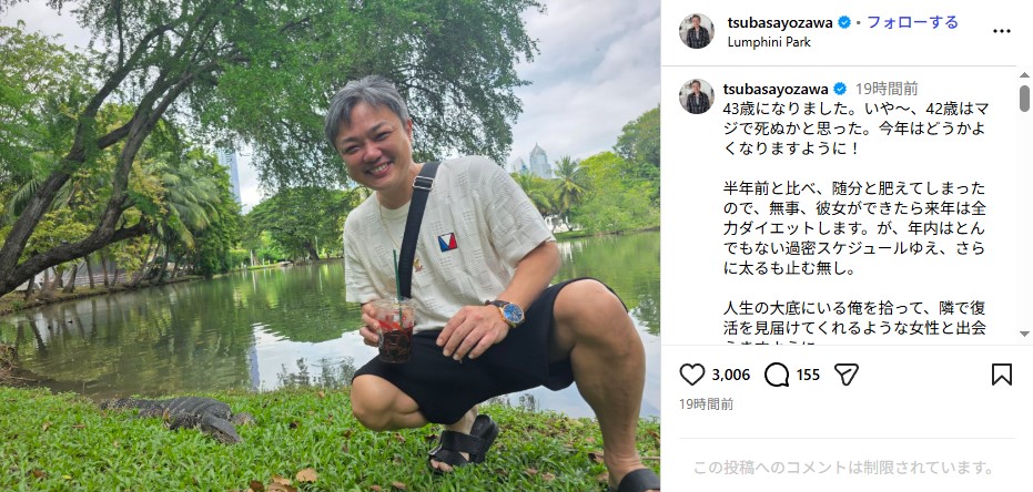 与沢さんは、「43歳になりました。いや~、42歳はマジで死ぬかと思った。今年はどうかよくなりますように!」と波乱万丈な1年を経て歳を重ねたことを報告。「半年前と比べ、随分と肥えてしまった」と体重が大幅に増えたことを明かしながら、晴れやかな笑顔を浮かべた最新ショットを公開しました。