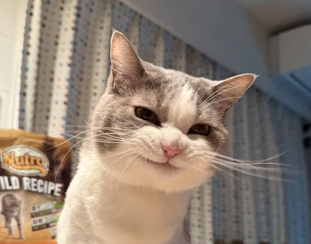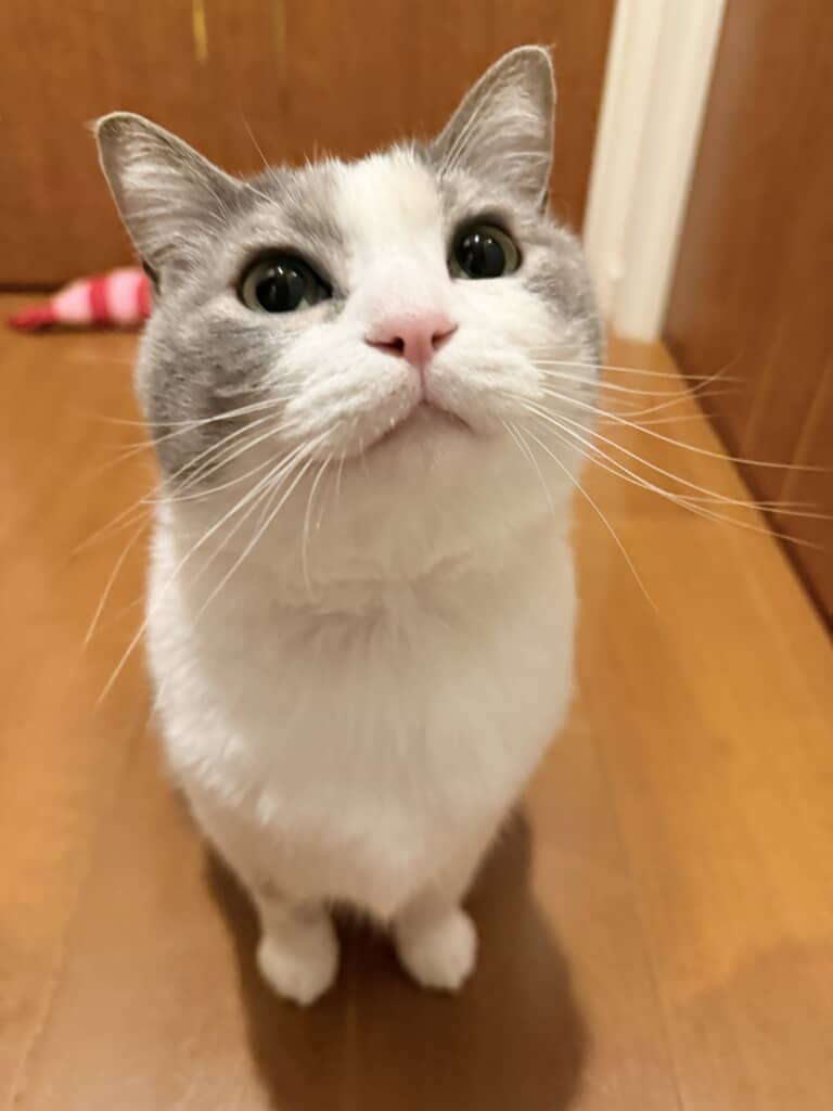 ごはんを待っている猫の顔を見てみると……。思わずドキッとするまさかの表情が、X(Twitter)で210万回以上表示され、約3万3000件のいいねを集めるほど話題になっています。