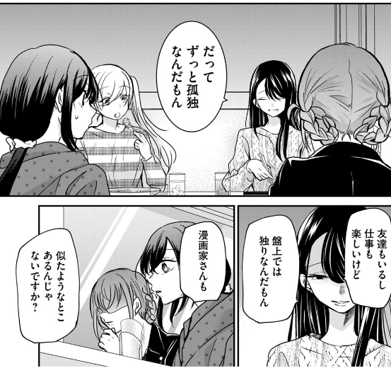 「だってずっと孤独なんだもん 友達もいるし仕事も楽しいけど 盤上では独りなんだもん 漫画家さんも似たようなとこあるんじゃないですか?」