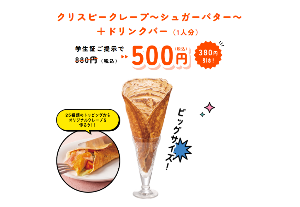 デニーズ「平日・学生限定500円」でクレープ&ドリンクバーが楽しめる! 学割企画「#デニ部」第2弾11月19日から