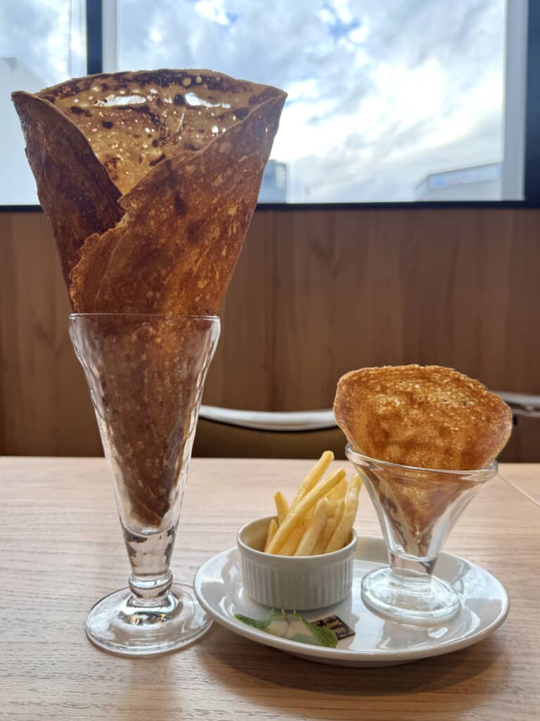 直径30センチほどのシュガーバタークレープがそのままやってくるので、テーブルに来ただけで「わあっ」と声を上げたくなるサイズ感です。