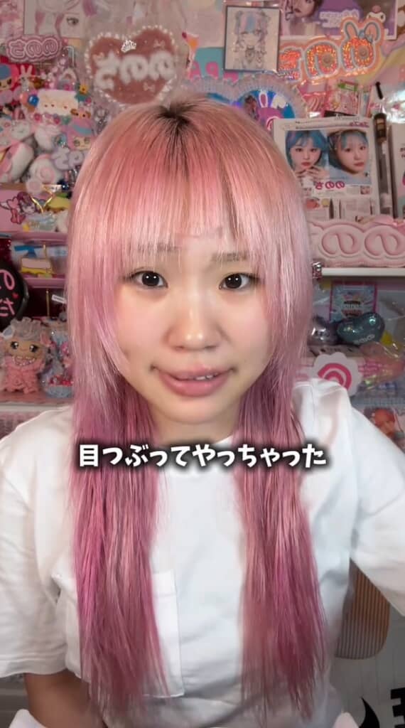 ピンク髪の女性が、前髪を「過去一のオン眉」にセルフカットしたら…… 衝撃の仕上がりに「似合うのなんで?ww」「大優勝すぎる」