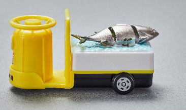 いろいろ遊べるこのトミカは、公式アプリに会員登録したうえで、かっぱ寿司を3500円以上利用するともらえます(数量限定、なくなり次第終了)。さらに11月20日からは、ターレー(※)がもらえる第2弾がスタート。荷台のマグロがビチビチ動くギミック付きで、こちらもまた楽しそうです。