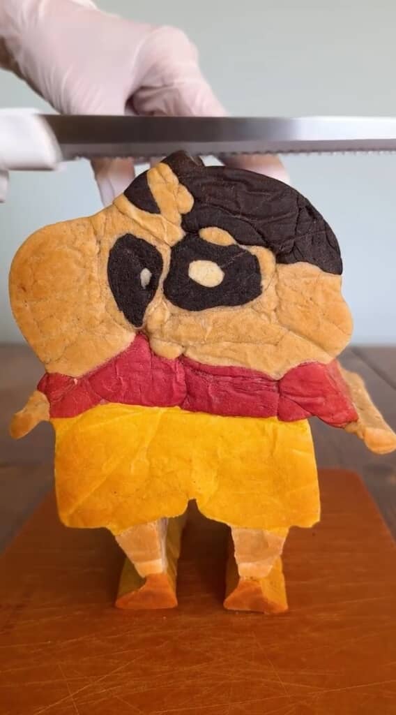 日本のみならず海外でも人気の『クレヨンしんちゃん』をモチーフにした、あっと驚くような“パン”がInstagramに投稿され、記事執筆時点で236万回以上再生されるなど話題になっています。パンに包丁を入れる場面をわくわくしながら見守っていると、その断面に現れたのは……?