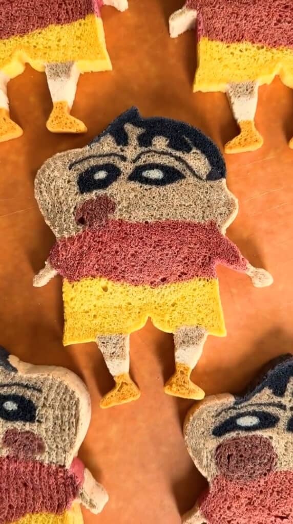 RanさんのInstagramTikTokXアカウントでは、人気のキャラクターたちや、“まさかパンになるなんて”と驚いてしまうようなアイテムをパン化した動画がたくさん見られます。過去には、斬新な別のアイデアで作られたクレヨンしんちゃんパンも投稿されており、そちらにも多くの反響が寄せられました。