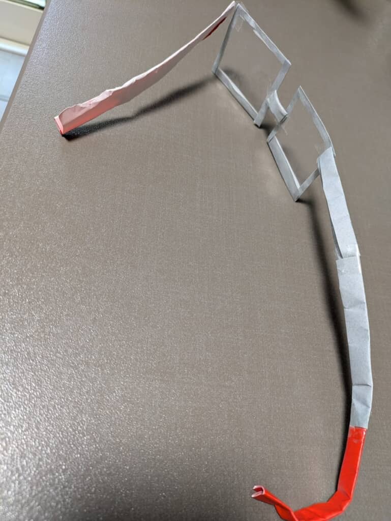 そこで娘さんが用意したのは“手作りのメガネ”。折り紙を使ったフレームに、透明なセロハンをレンズとして貼りつけています。