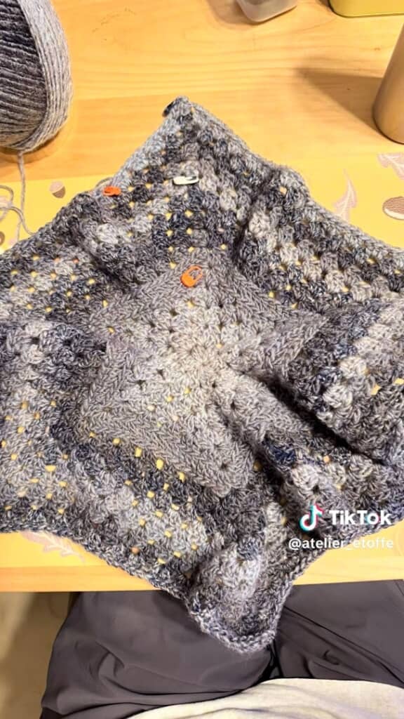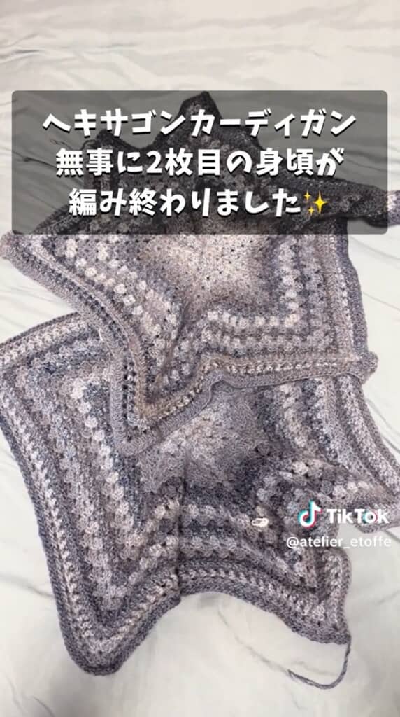 毛糸をひたすら六角形に編み、2枚をつなぎ合わせると……。冬の“おこもり”にぴったりなアイテムをかぎ編みで作る動画がTikTokに投稿され、全6編の動画が合わせて13万回以上再生されています。