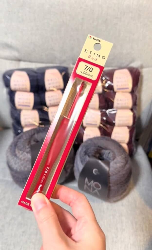 投稿者はTikTokユーザーの「けだま」(@atelier_etoffe)さん。「毛糸コーナーに行くと思考停止して数が数えられなくなる人」だというけだまさんは、今回ユザワヤに行って大量に毛糸を購入し、さらに編みやすいと評判の新しいかぎ針も手に入れて帰宅しました。好きな物がいっぱい並んでいると、ついたくさん買い物をしてしまうものですよね。