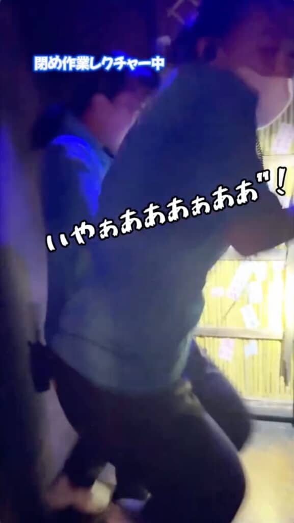 1/3)初めての閉め作業で緊張が高まる中、暗闇に響く「プシュー」の音に思わず絶叫しながら進むスタッフの姿