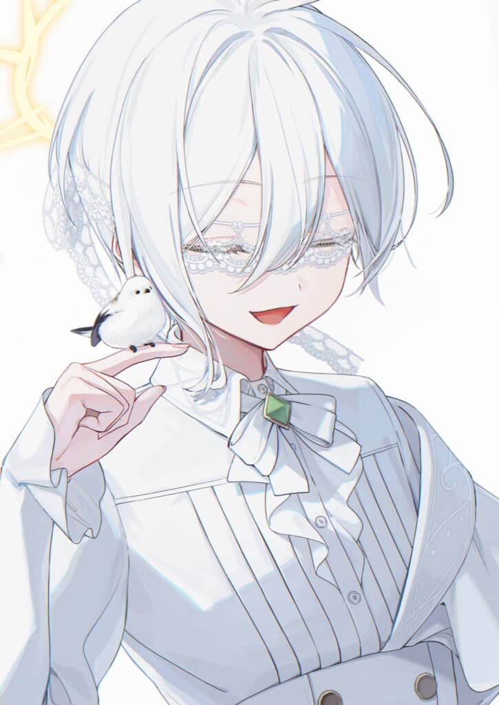 元となっているのは、11月15日に「Angel」と題して披露した、白を基調にしたデザインの人物が描かれたイラスト。指先に止まったシマエナガと寄り添ったほほえましい光景が表現されています。