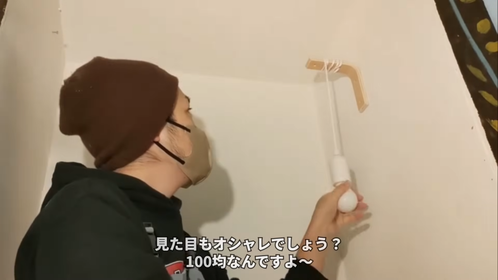 そこで用意したのは、乾電池式の照明器具。軽く引っ張るだけでオン・オフが切り替えられるという製品を、天井から吊り下げるように設置しました。