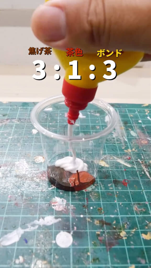 そして、抹茶は色の配合を変えるだけでOK。黄色のアクリル絵の具を多めに入れて、そこに少量の緑と茶色を足したらほどよい色合いになったといいます。簡単に作れるので、みなさんもぜひ挑戦してみてはいかがでしょう。