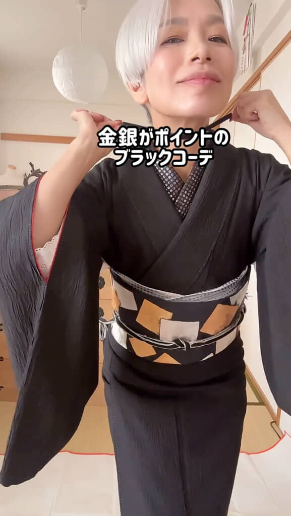 59歳女性、ちょっとした集まりに真っ黒な着物を着ていくと…… まさかの着こなしが「センスが渋滞」「カッコイイ」「粋ですね」