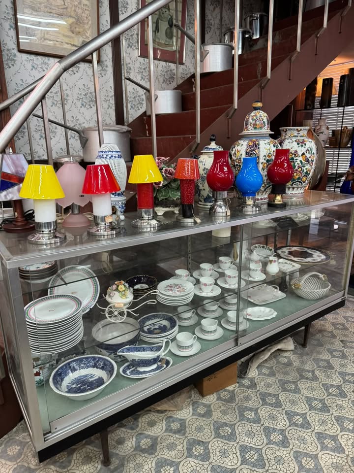 店内には食器の他、時計や花瓶、小鉢、つまようじ入れなどさまざまな商品が所狭しと並んでいます。20年前の物であるため、デザインは「一周回ってオシャレ」な感じ。手に取ってじっくり見ながら“好きな人にはたまらないのでは”と2人は感想を伝えています。