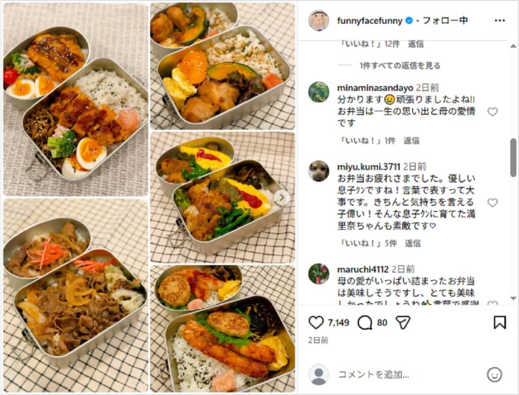 渡辺さんにとって予期せぬ息子のメッセージだったようで、「ほろりと泣けた」「そんな言葉をくれるとは思ってなかったから、作ってきてよかったなとしみじみ思いました」と大変な感激ぶりをあらわにし、「不恰好な母のお弁当」「食べてくれてありがとうねーー!」と息子に向けて万感の思いをつづったのでした。