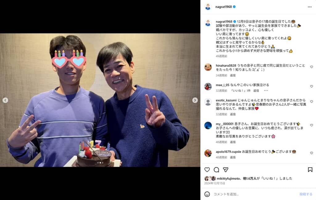 もうすぐ18歳の誕生日を迎える長男(画像は名倉潤Instagramから)